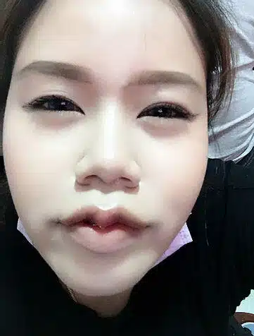 กระจับชัดเป็นทรงสวยมากๆ ของเรายกมุมปาก ด้วยนะคะ มีอาการบวมนิดนึงค่ะ