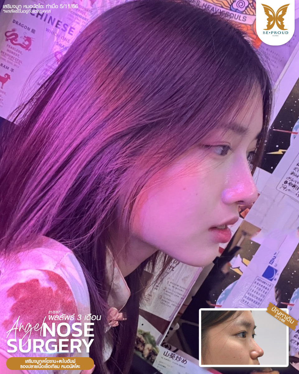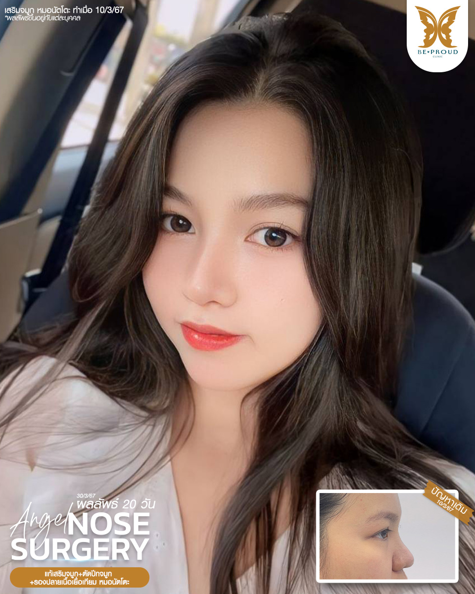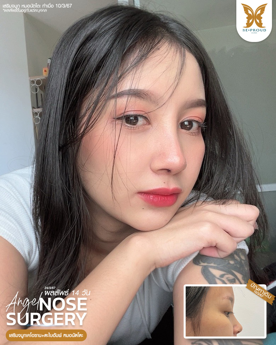 การรองปลายจมูกด้วยกระดูกอ่อนหลังหูเป็นเทคนิคที่ช่วยเพิ่มความแข็งแรงให้ปลายจมูก ลด ความเสี่ยงปัญหาซิลิโคนทะลุ ทําให้จมูกดูเป็นธรรมชาติ เหมาะสําหรับผู้ที่ต้องการเสริมความ โด่งของปลายจมูกอย่างปลอดภัย โดยเฉพาะผู้ที่มีเนื้อจมูกน้อย ปลายบาง รวมถึงเคสแก้ที่เคยมี ปัญหาจมูกผิดรูปหรือซิลิโคนทะลุมาก่อนหน้า เพื่อผลลัพธ์ที่ดีควรปรึกษาแพทย์เพื่อประเมิน โครงสร้างจมูกเดิมอย่างละเอียด และเลือกใช้เทคนิคที่เหมาะสม สนใจศัลยกรรมเสริมจมูก เทคนิครองปลายด้วยกระดูกอ่อนหลังหู สามารถสอบถามรายละเอียดเพิ่มเติมหรือนัดปรึกษากับ ทีมแพทย์ประสบการณ์สูงได้ที่ Beproud Clinic เราพร้อมดูแลให้คําแนะนําด้วยความใส่ใจ มีการ ออกแบบรูปทรงจมูกเฉพาะรายบุคคลและเทคนิคการผ่าตัดที่มีประสิทธิภาพ เพื่อทรงจมูกที่ดูสวยงาม โดดเด่น ไม่ซ้ําใคร