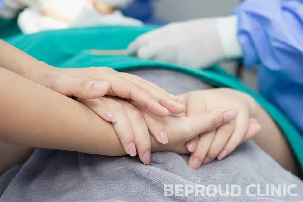 ตอนเข้าไปผ่าตัดนะคะ น้ำตาลรู้สึกอบอุ่นมาก แล้วก็ไม่ตื่นเต้นเลยค่ะ เพราะมีพี่ๆคอยดูแลให้กำลังใจตลอดตั้งแต่เข้าคลินิกยันตอนผ่าตัดเลยค่ะ