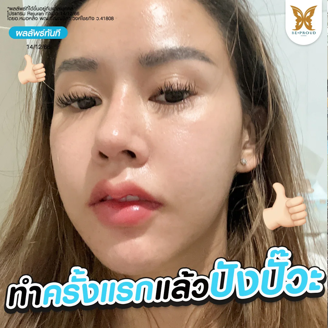 โดยดีเจเจียเจียมีการทำโปรแกรมรีจูรันซ้ำถึง 2 ครั้ง ทำเดือนละ 1 ครั้ง โดยใช้ Rejuran ครั้งละ 1 หลอด (ปริมาณ 2CC) เพื่อฟื้นฟูผิวที่อ่อนแอให้กลับมาแข็งแรง สุขภาพดีขึ้น และบำรุงเพิ่มให้ชุ่มชื้น อิ่มฟู ฉ่ำน้ำ