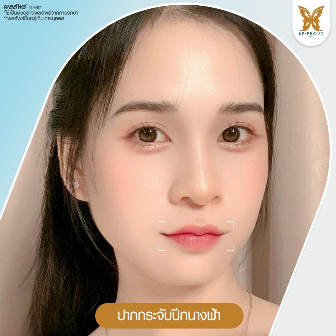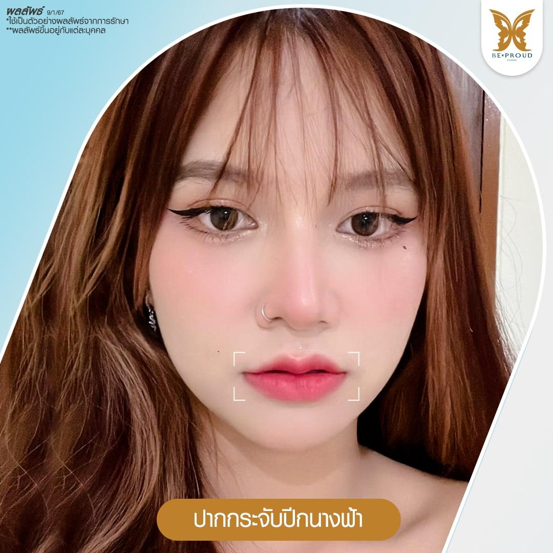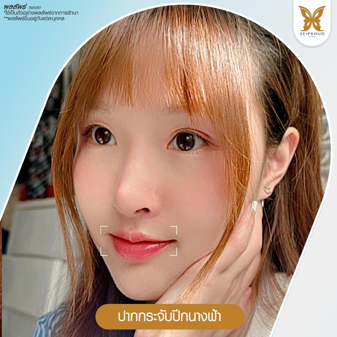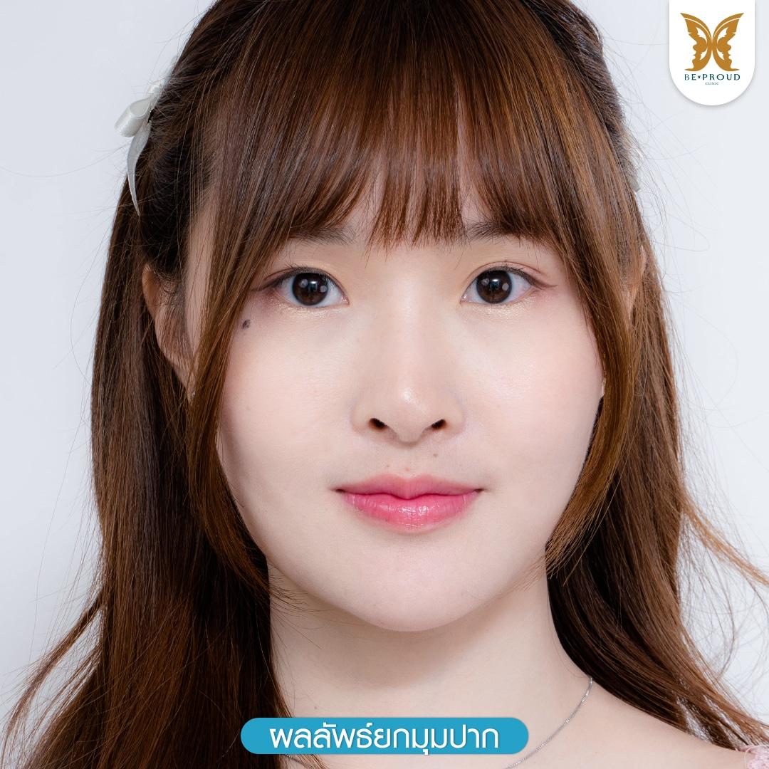 มุมปากตก หน้าดูบึ้งตึง แก้ไขได้ด้วยการหัตถการยกมุมปาก ช่วยปรับใบหน้าให้สวยละมุน ใบหน้าดูร่าเริงสดใสและมีเสน่ห์ดึงดูดใจมากยิ่งขึ้น โดยสามารถเลือกวิธีแก้ไขมุมปากตกได้ตามปัญหาและความต้องการของคนไข้แต่ละเคส ทั้งการยกมุมปากโดยไม่ต้องผ่าตัดด้วยการฉีดฟิลเลอร์ ฉีดโบท็อกซ์ และการร้อยไหมยกมุมปาก ซึ่งสามารถยกมุมปากให้สูงขึ้นได้อย่างรวดเร็วและปลอดภัย คงผลลัพธ์หลังการยกมุมปากได้ตั้งแต่ 6-24 เดือน และการผ่าตัดยกมุมปากที่สามารถแก้ไขมุมปากตกได้อย่างถาวรไม่ต้องกลับมาเข้ารับการรักษาซ้ำหลายครั้ง มีทั้งเทคนิคการผ่าตัดยกมุมปากแผลนอกที่ทำได้ง่ายแต่อาจเกิดรอยช้ำหรือรอยแผลเป็นได้ และเทคนิคการผ่าตัดยกมุมปากแผลใน เทคนิคการผ่าตัดรูปแบบเฉพาะของบีพราวด์ คลินิก ที่คิดค้นและพัฒนาโดยหมออาร์ม แพทย์ผู้มากประสบการณ์ด้านการปรับรูปทรงปากและยกมุมปาก ทำให้ทรงปากกระจับสวยอย่างเป็นธรรมชาติ ริมฝีปากของคนไข้ดูหวานละมุนและเป็นทรงสวยขึ้นอย่างเด่นชัดโดยไม่ทำให้เกิดรอยแผลเป็น