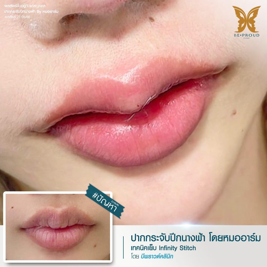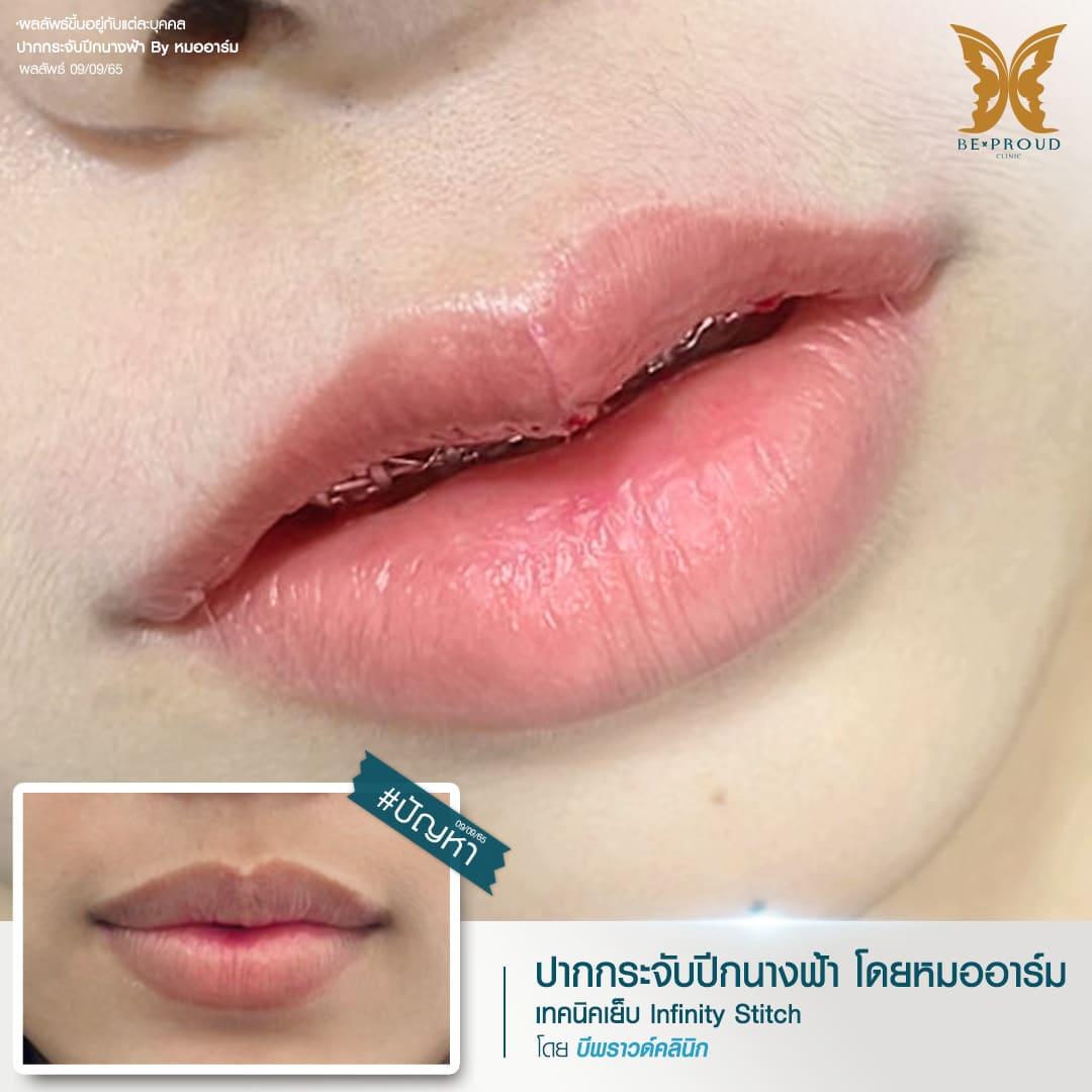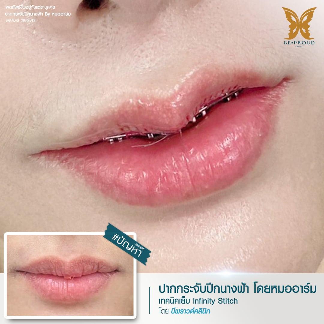 การผ่าตัดยกมุมปากแผลใน เทคนิคเฉพาะของหมออาร์ม บีพราวด์ คลินิก จากประสบการณ์การผ่าตัดยกมุมปากมาอย่างยาวนาน เจอปัญหารูปทรงปาก มุมปากตกมาหลายรูปแบบ ประกอบกับผลข้างเคียงที่อาจเกิดขึ้นหลังการผ่าตัดยกมุมปากแผลนอก ทำให้คุณหมออาร์ม ศัลยแพทย์ประจำบีพราวด์ คลินิกได้ทำการพัฒนาและคิดค้นเทคนิคการยกมุมปากแผลในที่สามารถแก้ไขปัญหามุมปากตกได้โดยไม่ทิ้งรอยแผลเป็น โดยใช้วิธีการผ่าตัดตัดแต่งทรงปากร่วมกับการผ่าตัดกล้ามเนื้อบริเวณมุมปากให้เป็นทรงโค้งเว้าสวยรับกับทรงปากกระจับ แล้วจึงเย็บแผลโดยซ่อนปมไหมไว้ด้านใน ผลลัพธ์หลังผ่าตัดจะช่วยปรับรูปทรงริมฝีปากให้สวยละมุน ยกมุมปากเบาๆไม่เยอะมาก ปากดูสวยอย่างเป็นธรรมชาติโดยไม่ต้องเปิดแผลผ่าตัดนอกริมฝีปากและลดโอกาสเกิดรอยแผลเป็น