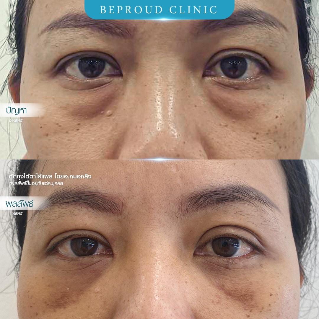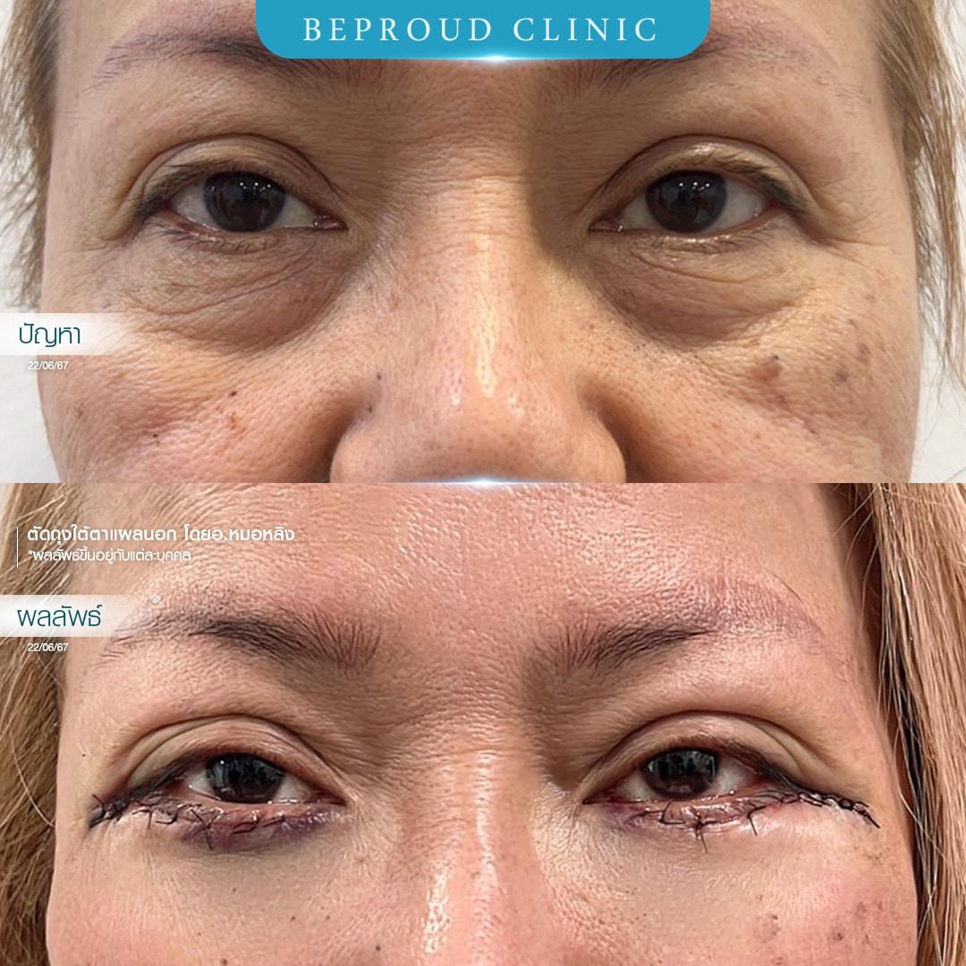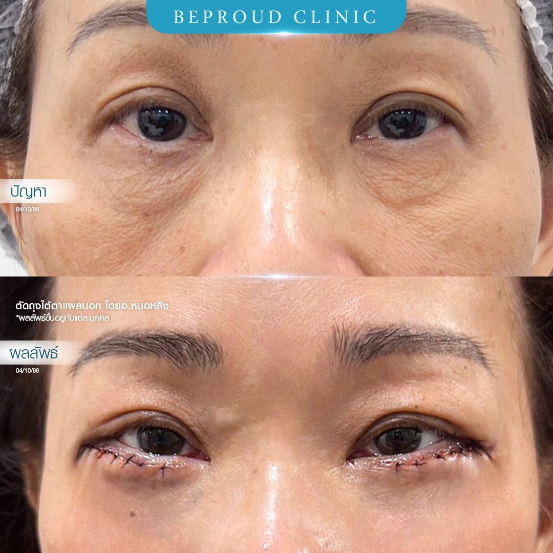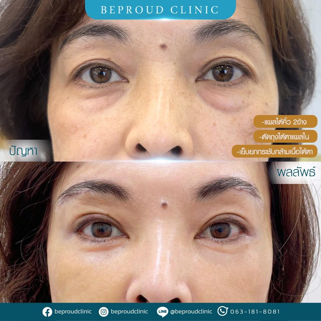 • การทําตาสองชั้นร่วมกับการตัดถุงใต้ตา แพทย์ทําการผ่าตัดเปิดแผลที่บริเวณ เปลือกตาเพื่อตัดแต่งหนังตาส่วนเกินและจัดเรียงไขมันเปลือกตาให้อยู่ในตําแหน่งที่ เหมาะสม จากนั้นจึงผ่าตัดนําถุงไขมันบริเวณเปลือกตาล่างออกเพื่อช่วยลดถุงใต้ตา ทําให้ผิวใต้ตาเรียบเนียน ดวงตากลับมาสดใส หน้าดูเด็กลง