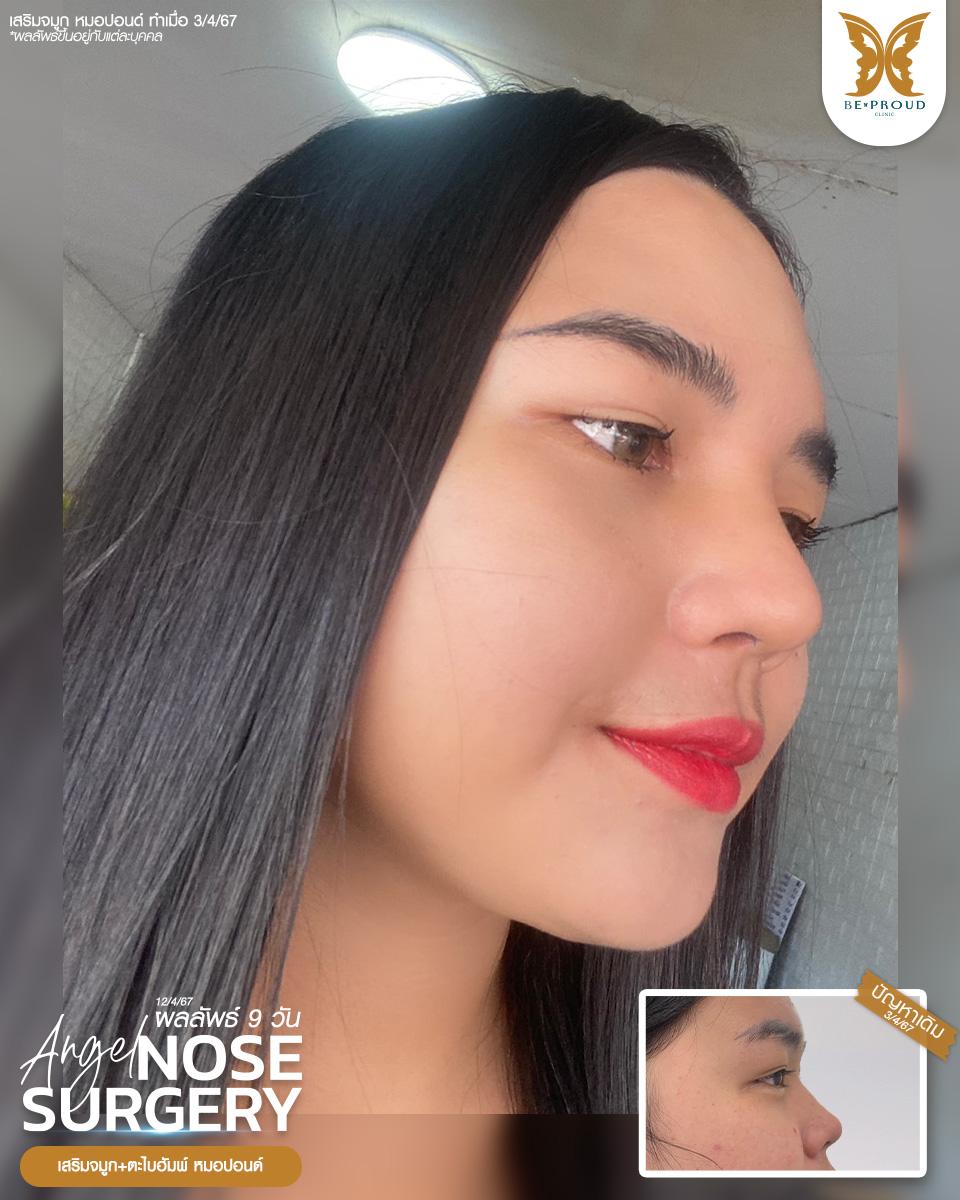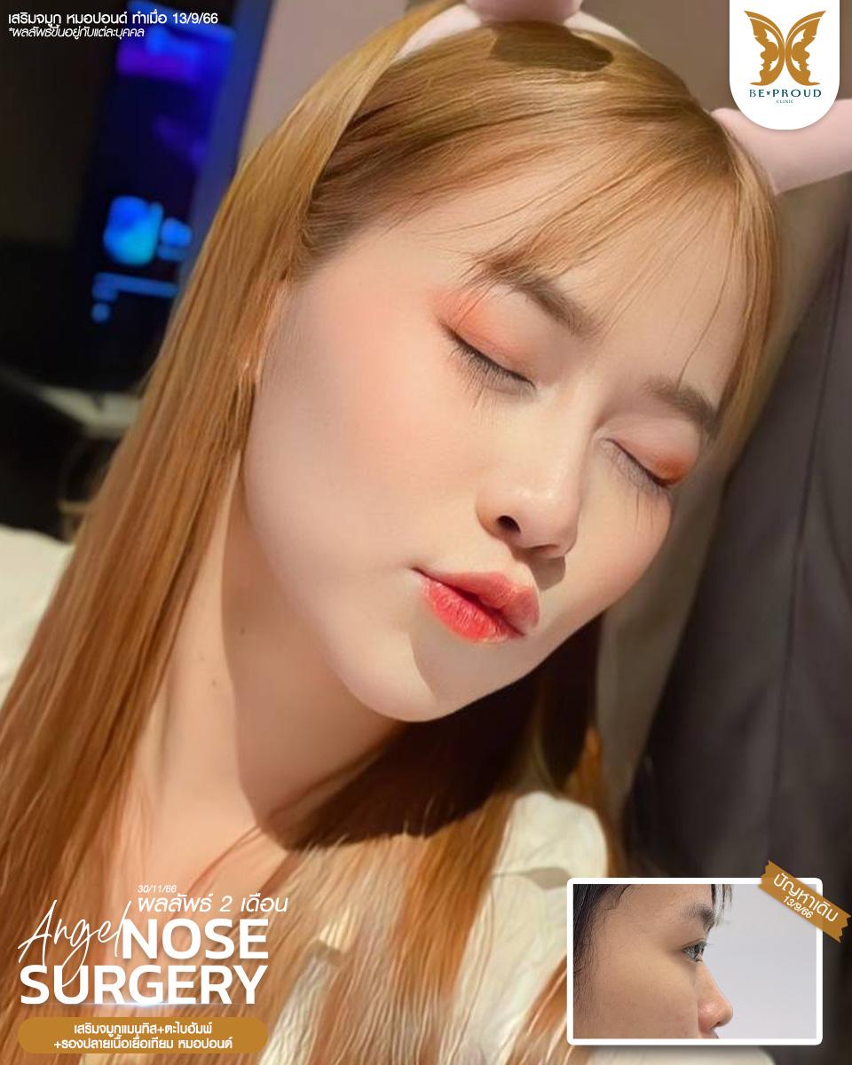ทรงจมูกที่ตอบโจทย์ความต้องการของคนไข้ได้อย่างลงตัวที่สุด ด้วยการใช้เทคนิค และรายละเอียดสุดพิเศษในการศัลยกรรมจมูกของแพทย์ผู้ชํานาญการประจํามีพราวด์คลินิก มีการประเมินโครงสร้างใบหน้าและออกแบบทรงจมูกเฉพาะรายบุคคล มีการใช้ ลิโคนเกรดพรีเมียมและเหลาซิลิโคนอย่างละเอียดตามโครงสร้างของรูปหน้าเพื่อสร้าง ผลลัพธ์ทรงจมูกที่เข้าใบหน้าของคนไข้ในแต่ละเคสได้เป็นอย่างดี ทั้งยังมีการเย็บล็อก 2 ชั้น ป้องกันการเคลื่อนตัวของซิลิโคน ทรงจมูก Slope Angel จึงสวยเด่นเป็นธรรมชาติ ไม่ซ้ําใคร