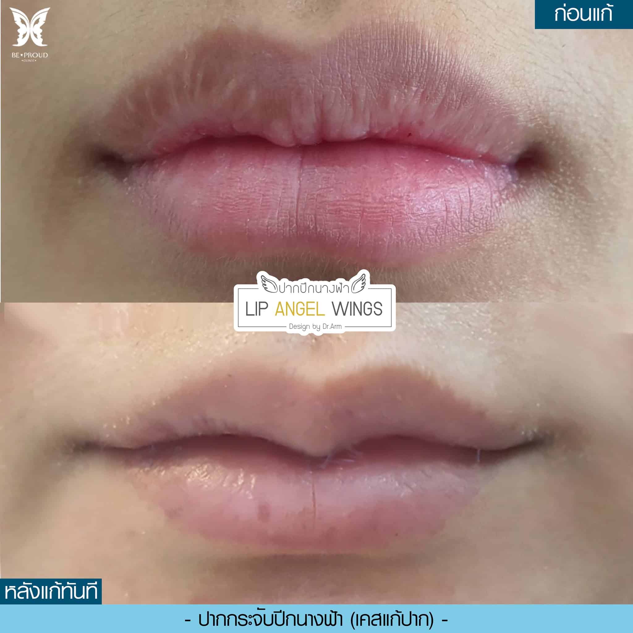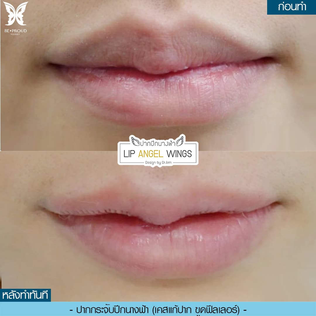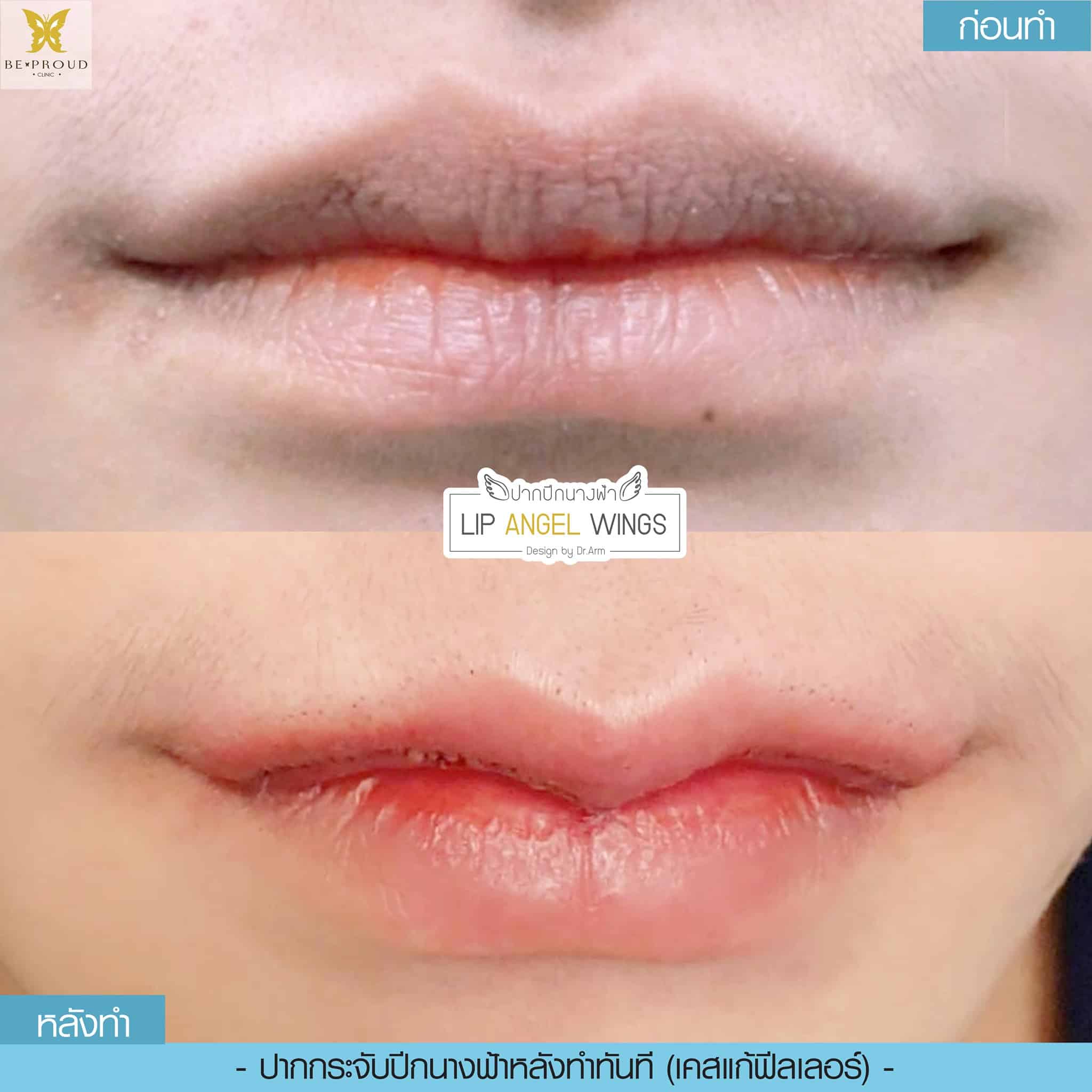ฟิลเลอร์แท้ตัวสารเหลวจะอยู่แยกกับเนื้อเยื่อปากไม่รวมกันเหมือน ฟิลเลอร์ปลอม ทำให้ตัดเลาะออกมาได้ง่าย โดยคุณหมอจะตัดเลาะเนื้อฟิลเลอร์ร่วมกับการผ่าตัดปากกระจับให้ได้รูปและเป็นทรงขึ้น