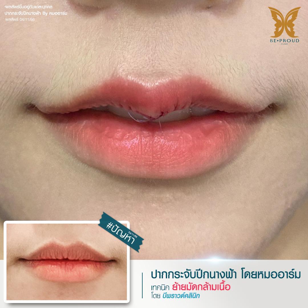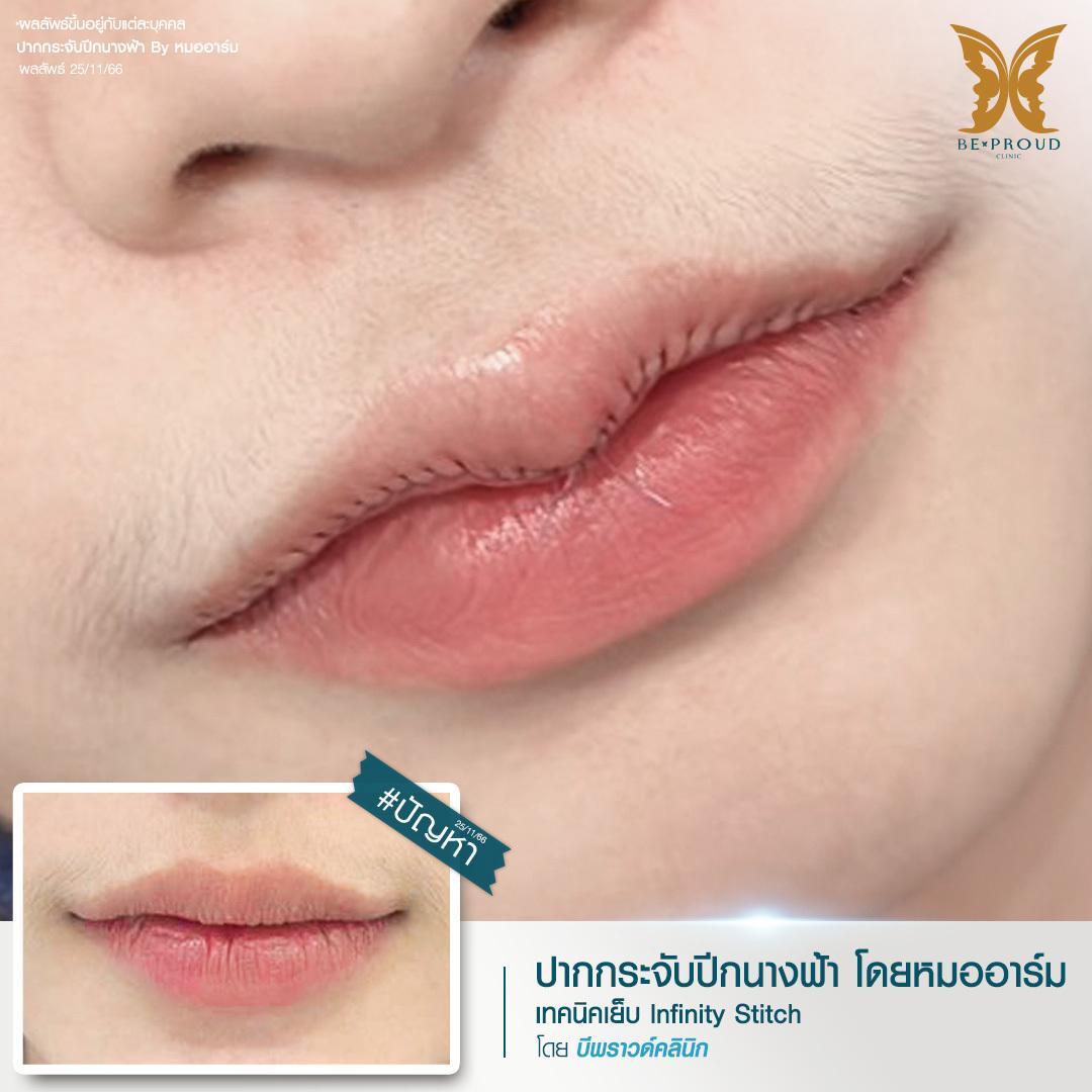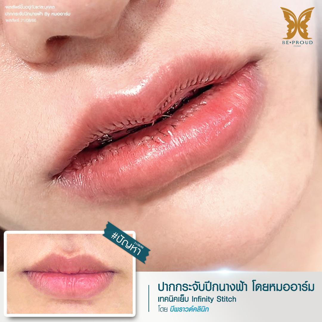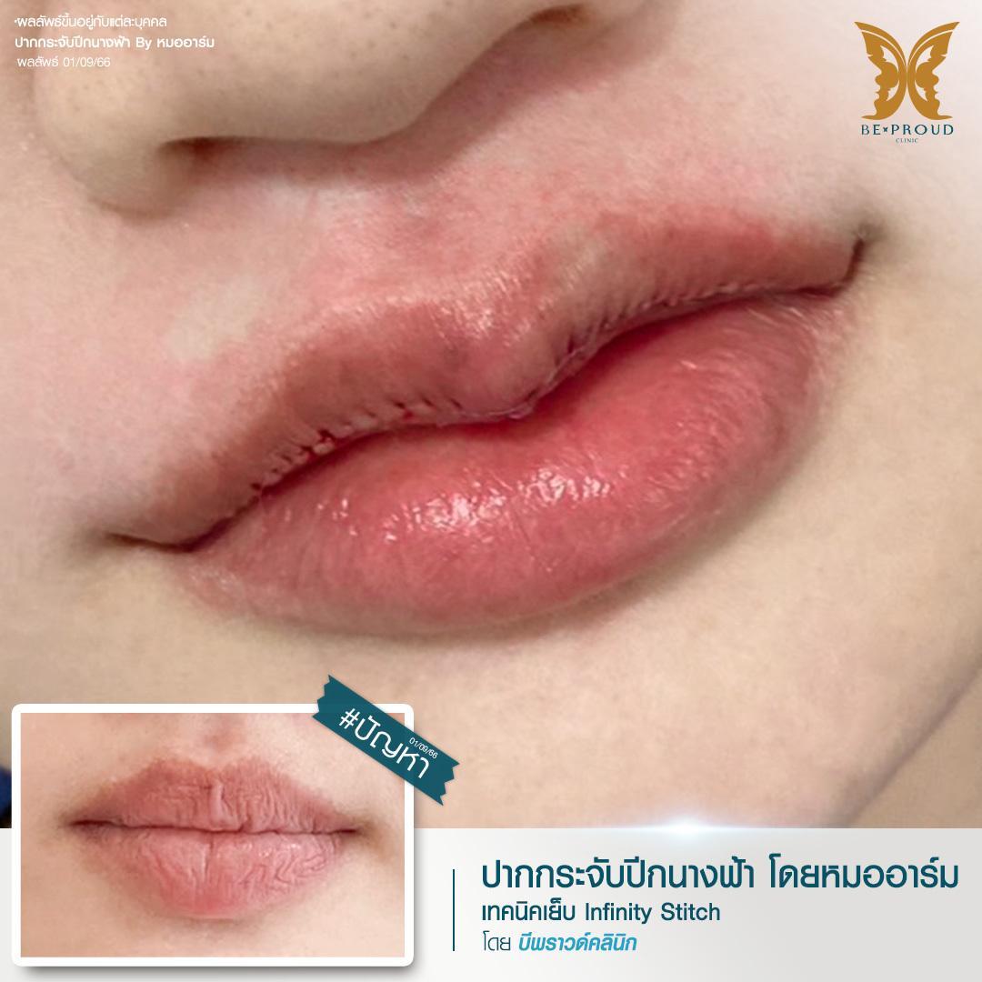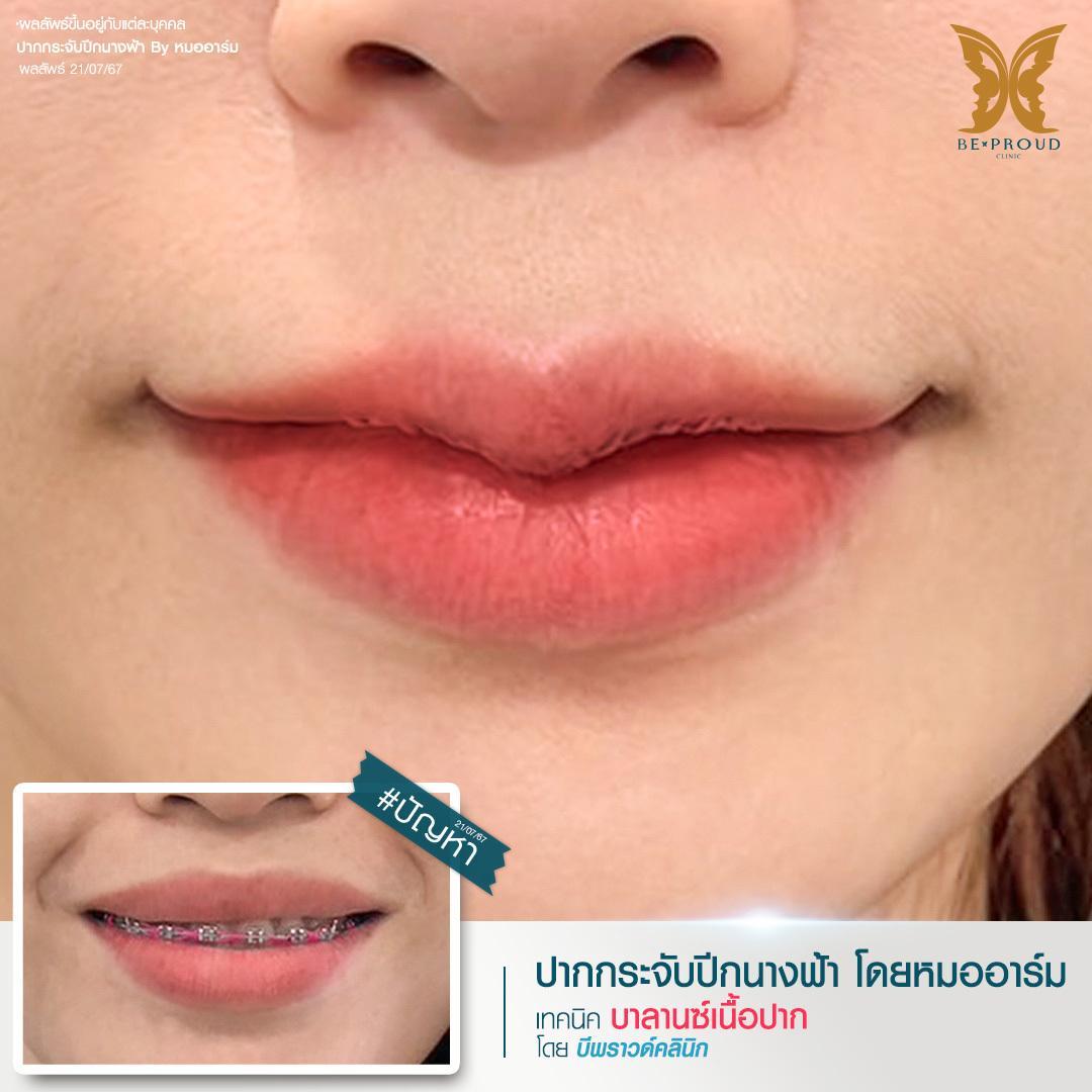 ก่อนทำมีปัญหาปากหนามาก ไม่มีทรงเลย เวลายิ้ม ไม่มั่นใจสุด ๆๆๆ ดูหน้าดุ หน้าบึ้ง เลยตัดสินใจมาทำปาก ตอนแรกเจอบีพราวด์จากคลิปใน Tiktok รีวิวสวย แต่ก่อนหน้านี้ก็ดูรีวิวมาเยอะมากดูอยู่หลายที่ จนสุดท้ายก็มาจบที่บีพราวด์ เพราะทุกเคสรีวิวที่เข้ามาทำคือสวยมาก แผลสวย ทำออกมาดูธรรมชาติ