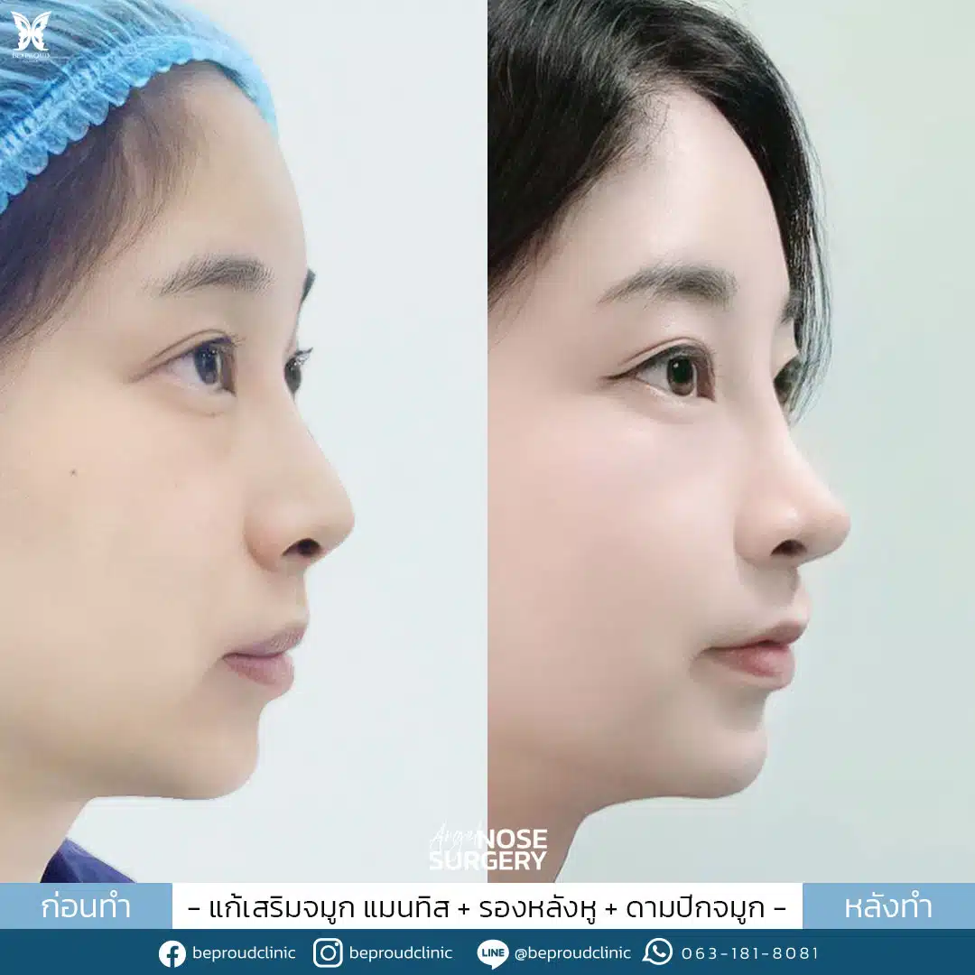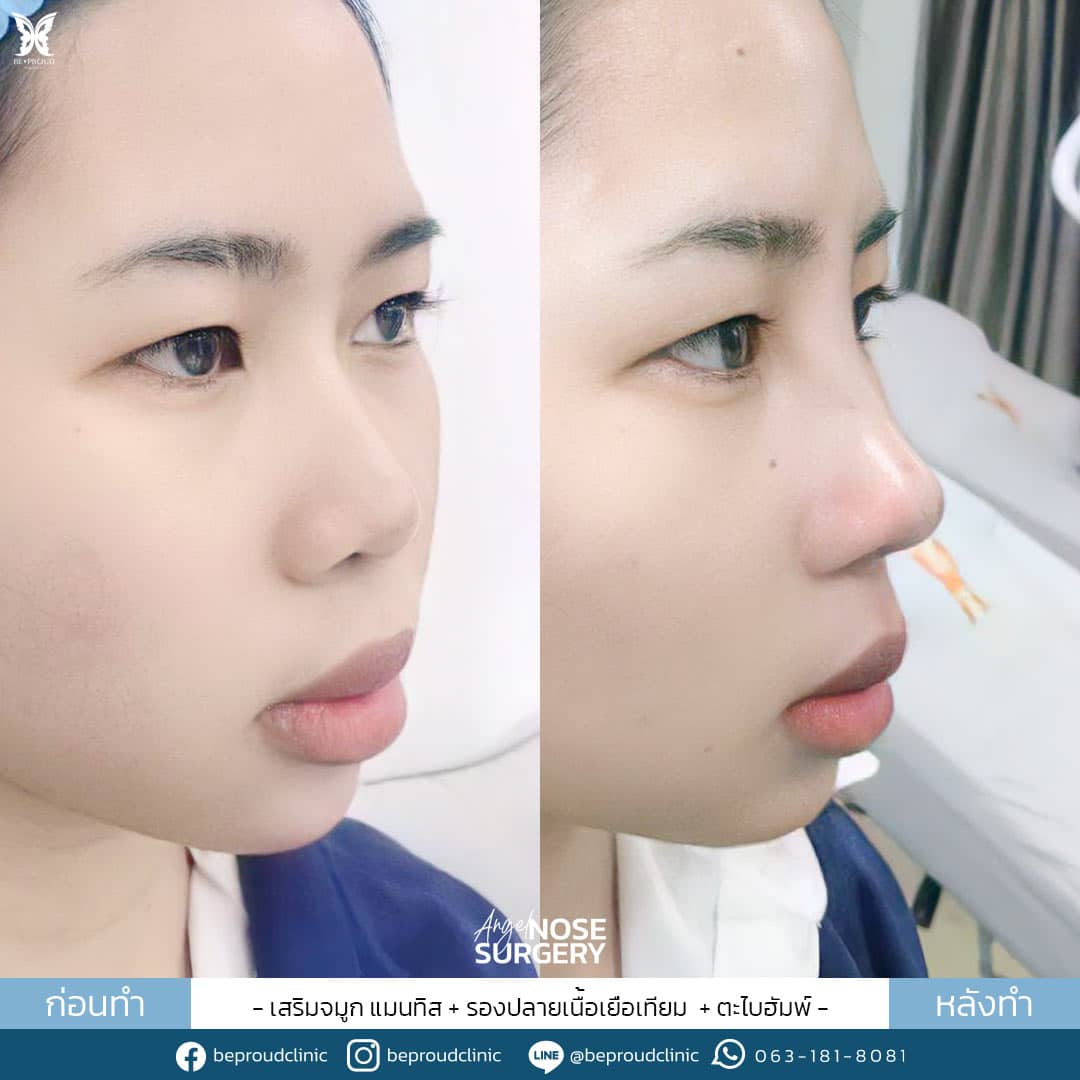 เพื่อป้องกันไม่ให้เกิดโอกาสที่ซิลิโคนจะทะลุจมูก ทางบีพราวด์คลินิก มีเทคนิคที่ช่วยป้องกันไม่ให้เกิดการทะลุของซิลิโคนได้แก่เทคนิค “รองปลายกระดูกอ่อนหลังหู หรือเนื้อเยื่อกกหู” และ “รองปลายด้วยเนื้อเยื่อเทียม”