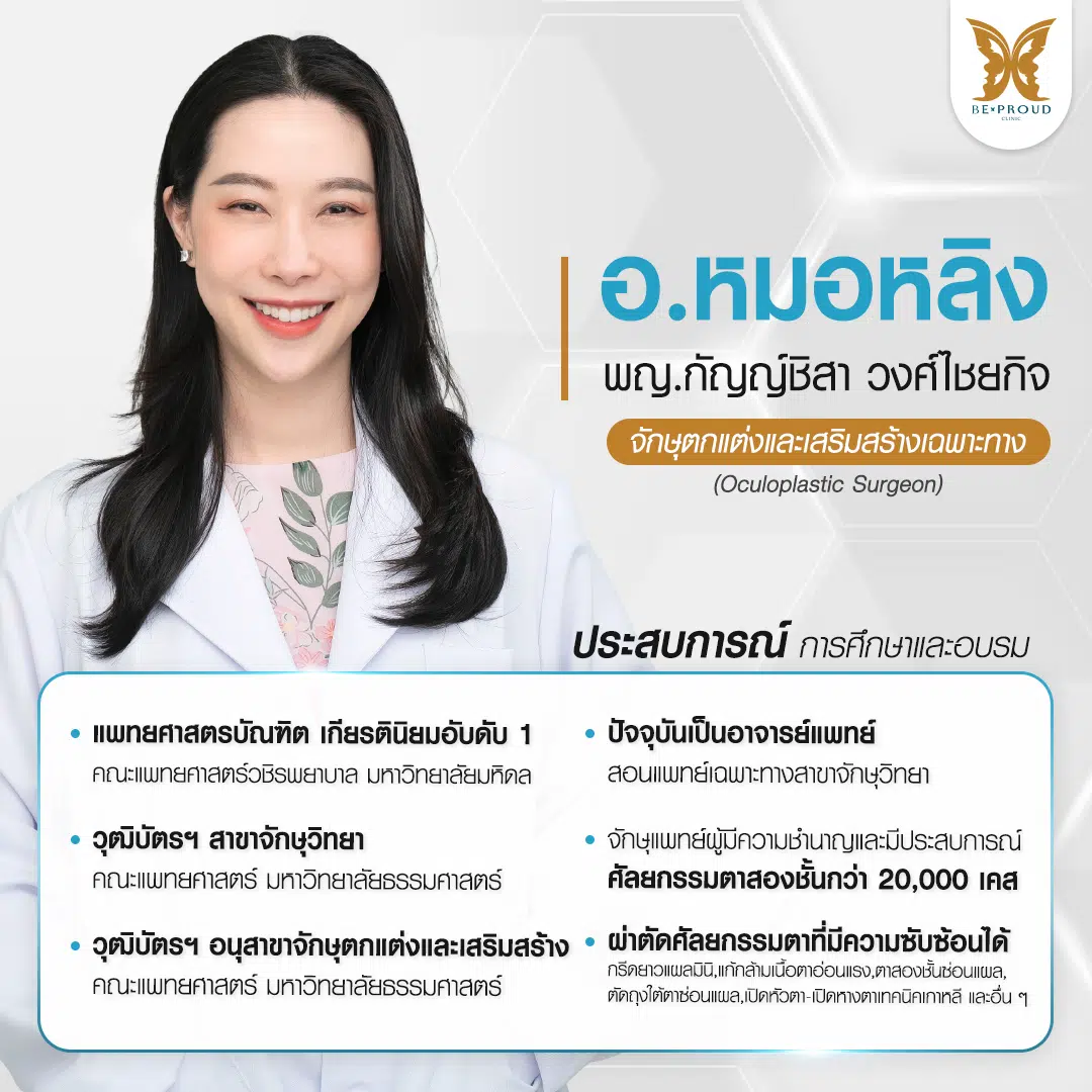 คุณอีฟเลือกทำตาสองชั้นกับ อ.หมอหลิง เนื่องจากความน่าเชื่อถือของคุณหมอซึ่งเป็นถึงจักษุแพทย์เฉพาะทางศัลยกรรมตกแต่งและเสริมสร้างรอบดวงตา และมีผลงานรีวิวจำนวนมาก ดูรีวิว อ.หมอหลิง